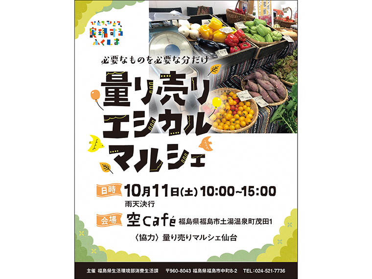 福島県消費生活課では、10月11日(土)に、人や社会、環境にやさしい商品やサービスを選ぶ消費行動の「エシカル消費」を知ってもらうためのイベント『量り売りエシカルマルシェ』を開催します。