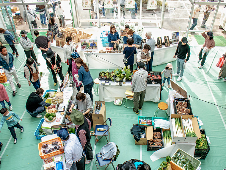 川俣町の新米や旬の秋野菜などを農家から直接購入できる他、川俣町の農産物を使った限定メニューを提供する飲食店も多数出店。また、サツマイモの収穫や畑のくるま乗車体験、野菜で作るブーケ、わら細工のワークショップなども楽しめる。