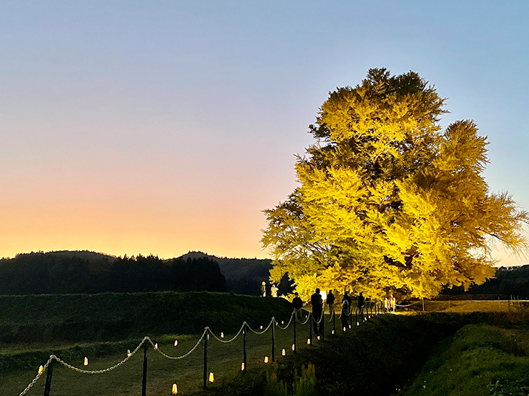黄葉は11月上旬から中旬まで楽しめる。11月8日(土)・9日(日)・15日(土)・16日(日)は地元有志「ルート294湊翔会」によるライトアップを実施。闇夜に浮かぶ貫禄ある姿を眺めてみては。