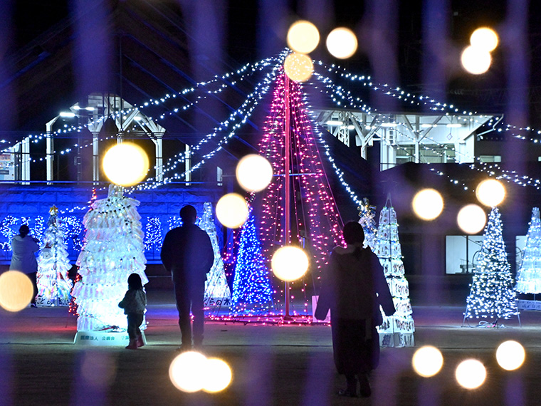 大正10年に建てられたレトロな白河駅舎と駅周辺を、イルミネーションや「ペットボトルツリー」で華やかに飾り付ける。駅舎に設置されている美しいステンドグラスも必見。