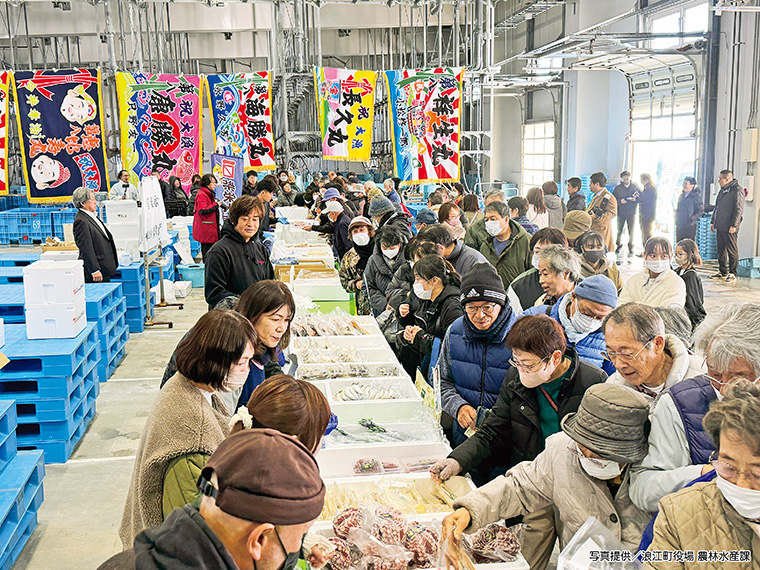 請戸漁港で水揚げされた新鮮な海産物“請戸もの”が豊富に揃う。当日は、数量限定でホッキ飯とカニ汁のふるまいもあり。詳細はHPをチェック!