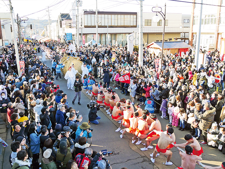 イベント 大俵を引き合い、一年の運を決める会津坂下町の奇祭 坂下初市 奇祭大俵引き 2026年1月14日(水) 会津坂下町役場前通り 会津坂下町会津エリアイベント 情報掲載日:2026.01.07 ※最新の情報とは異なる場合があります。ご了承ください。 Tweet 毎年1月14日に開催する会津坂下町の伝統行事『坂下初市』。ふんどし姿の男衆が町役場を中心に東西に分かれて巨大な俵を引き合う。「東が勝つと米の値段が上がり、西が勝つと豊作になる」と言われる。 Information 坂下初市 奇祭大俵引き 開催期間 2026年1月14日(水)11:00~20:00 ※奇祭大俵引きは14:00~ 会場名 会津坂下町役場前通り 会場住所 料金 観覧無料 問い合わせ先 (一社)会津坂下町観光物産協会 問い合わせ先電話番号 0242-83-2111