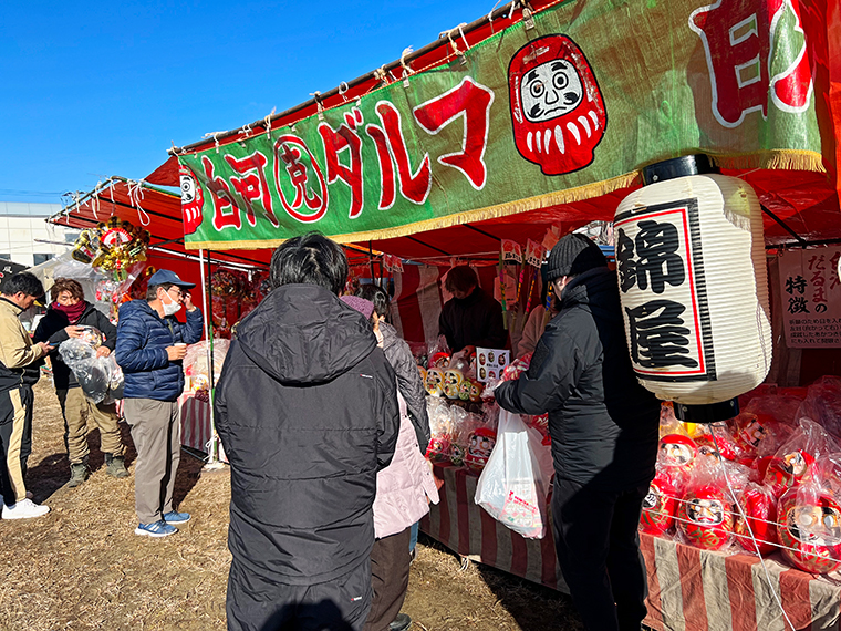 田村市の冬の風物詩『船引だるま市』。縁起物である「三春だるま」や「白河だるま」を中心とした露店が連なる他、ガラポンやビンゴ大会、滝根町あぶくま太鼓紅組による演奏といった催しも行う。