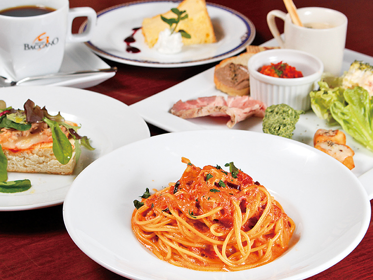 きめ細やかなサービスが好評のイタリアン店『BACCANO』。ランチタイムは、旬の食材を使った「季節のハーフランチセット」が一押し。メインの料理を5種類から選べる。リーズナブルな「週替わりランチ」もあり。