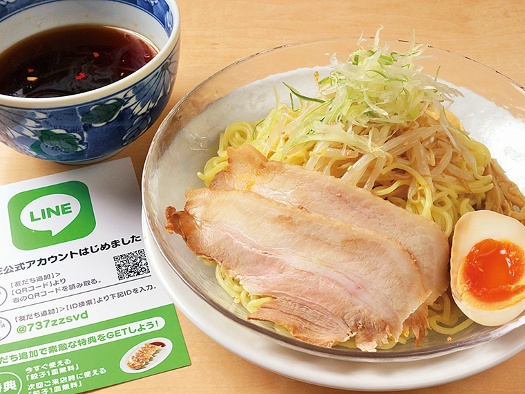 国道4号沿いでアクセス良好の人気ラーメン店『ロクマルラーメン』。夏には限定のつけ麺がおすすめ。「冷やしあっさりしょうゆつけ麺」は790円。