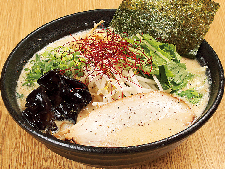 伊達鶏をベースにした動物系と魚系のスープを合わせた奥深い味わいが人気の『石川屋』。「豚骨醤油」は、こってりとした豚骨スープの中に伊達鶏の風味が際立つ一杯。
