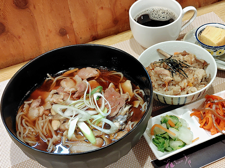 福島市陣場町にオープンした気軽にそばを味わえる食事処『花音(かおん)』。「そば(冷・温)」(900円)はもちろん、お得な「ランチセット」(1,300円)もおすすめ。