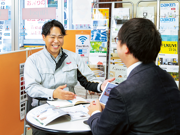 福島県内外に7ヵ所ある支店・営業所・出張所では塗料・塗装関連商品・工業薬品・設備・機器など、数万アイテムの商品を取り扱う。企業だけでなく個人客にも対応し、それぞれのニーズに寄り添った最適な商品を提案するのが「販売事業部」。