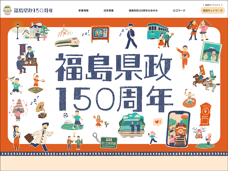 『福島県政150周年記念事業』については特設サイトで随時発信中。また、特設サイトでは福島県政150周年を一緒に盛り上げる官民ネットワークの加盟団体も随時募集している。