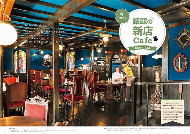 福島県の旬な情報をお届けする月刊誌「CJ Monmo」11月号は、新店カフェを特集!まるでお城のようなカフェや昭和レトロ、ハワイアンなど個性あふれる空間から、腸活ランチ、ベーグルサンド、ドーナツ、中国茶といったここでしか味わえないメニューまで、カフェの魅力を余すことなく紹介します。