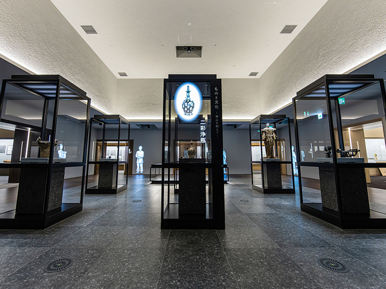 常設の「テーマ展示室」では、「ものと文化」「みちとまち」をテーマに郡山の歴史を原始・古代・中世・近世・近現代にわけ、通史として展示。デジタルを活用した視覚的な展示にも注目。